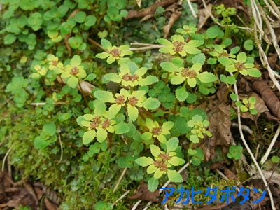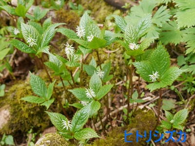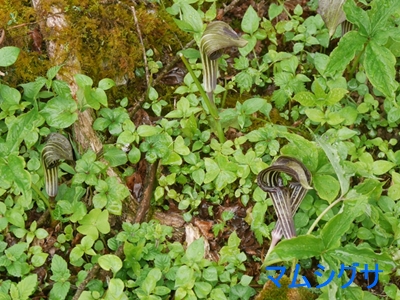 | 参加者13名は伊吹薬草の里文化センターに集合し、会員3台の車に分乗して登山口の国見峠へ。お天気のせいか駐車場所はガラガラでした。登山口からしばらくは植林帯が続き歩きやすい道ですが、自然林に変わるところから尾根に取りつくまでは急登となり、みんな慎重に登りました。花の方はこのエリアも鹿の食害が酷く、かつて花の宝庫だった面影はかなり薄れていました。それでも、ハクサンハタザオ、終わりかけのヒトリシズカ、咲き始めのフタリシズカ、アカヒダボタン等のネコノメソウ、ヒメレンゲ、ミヤマハコベ、紫色のマムシグサ、ラショウモンカズラ等々を観察できました。 |